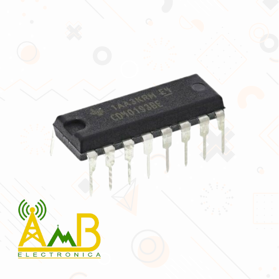 El CD40193 es un contador síncrono CMOS de 4 bits que puede operar en modo ascendente o descendente, dependiendo de la señal de control aplicada. Incluye entradas de carga paralela, reset asíncrono, y salidas de borrow/carry para conexión en cascada con otros contadores.