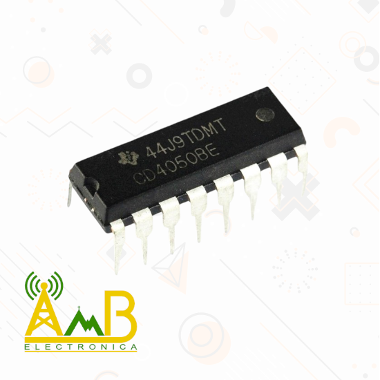A diferencia del CD4049 (inversores), el CD4050 proporciona salidas no inversoras, lo que lo hace especialmente útil como buffer intermedio y como convertidor de niveles lógicos entre sistemas de distinta tensión. Opera en un rango de alimentación de 3 V a 15 V, con bajo consumo de potencia y alta inmunidad al ruido, características propias de la tecnología CMOS.